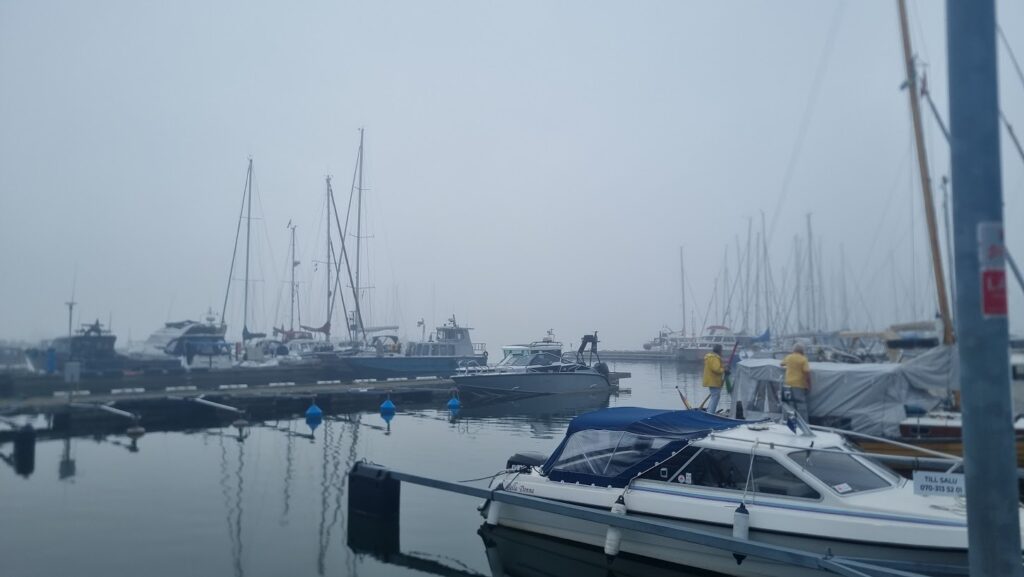 På onsdagen vaknade vi till rätt så tjock dimma, men det gjorde inget efter som dagen ägnades åt att ta pendeln till Stockholm och handla sjökort – båtsportkorten för Stockholm norr och Stockholm mitt.