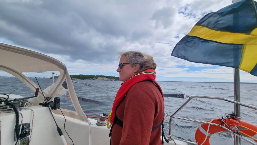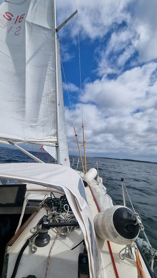Följande dag velade jag en del om vindstyrkan, men vi konstaterade att det inte var värre än det hade varit på Vänern, så vi kastade loss och satte segel direkt utanför gästhamnen för vidare färd mot Stavsnäs Vinterhamn.