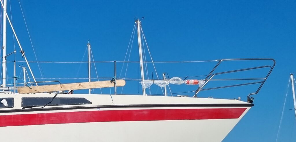 Ny säkerhetsutrustning som livboj med ljus, flytvästar Baltic Legend SLA 165 – självuppblåsande med sele, ljus och sprayhood samt plats för PLB (https://www.sjofartsverket.se/sv/sjo–och-flygraddning/ansokan-och-registrering/registrering-av-nodsandare/ – kommer att skaffas nästa år innan vi ger oss över Östersjön), modern VHF, AIS-transceiver, gasolvarnare, kolmonoxidvarnare, men även lite bekvämlighetsgrejor som en tankmätare och kastruller som fungerar på induktionshäll. Glas-glasen och porslinsmuggarna som kom med båten hade vi redan bytt ut mot metall-dito som vi tog hemifrån.