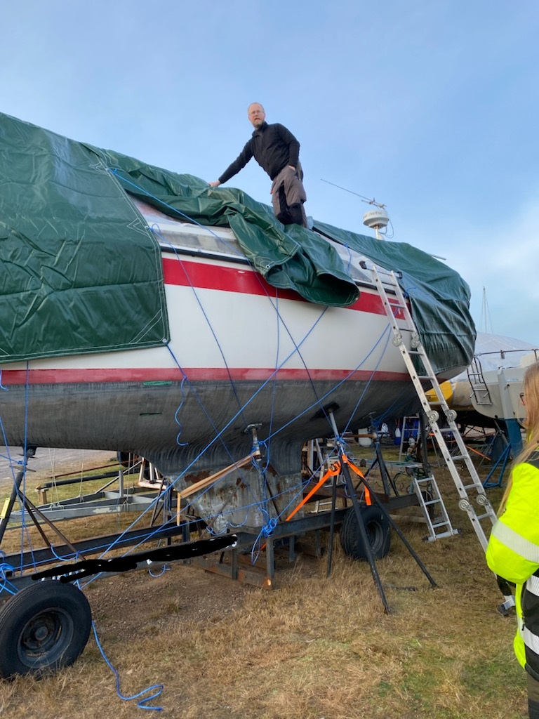 Förutom uppenbara saker som bottenfärg och prylkastande så behövde vi byta bälg på drevet. Det lejde jag bort för det är megajobbigt och gör man fel går båten rakt ner. Se även https://www.praktisktbatagande.se/livetombord/sa-byter-du-balg-pa-ett-s-drev .