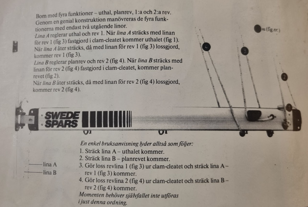 En del av problemen utmaningen med bommen är att den är genialisk, som syns på bilden från broschyren. Det sitter en mekanism med taljor och rep och trissor och pryttlar inuti bommen som gör att detta fungerar, och den mekanismen kan naturligtvis börja kärva.